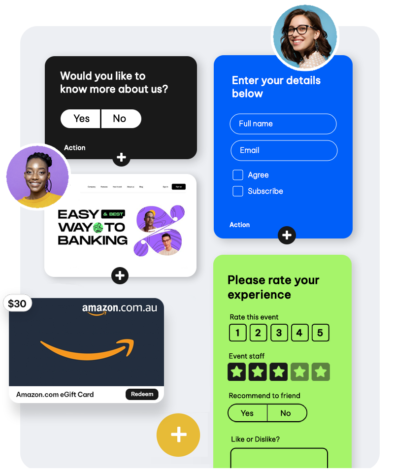 Customers feel happier, reveal more and stay interested when their experience feels relevant and rewarding. Ask people questions or get their input, then change what comes next based on their response. Reward their loyalty at the right time or ask for more details when you need to.